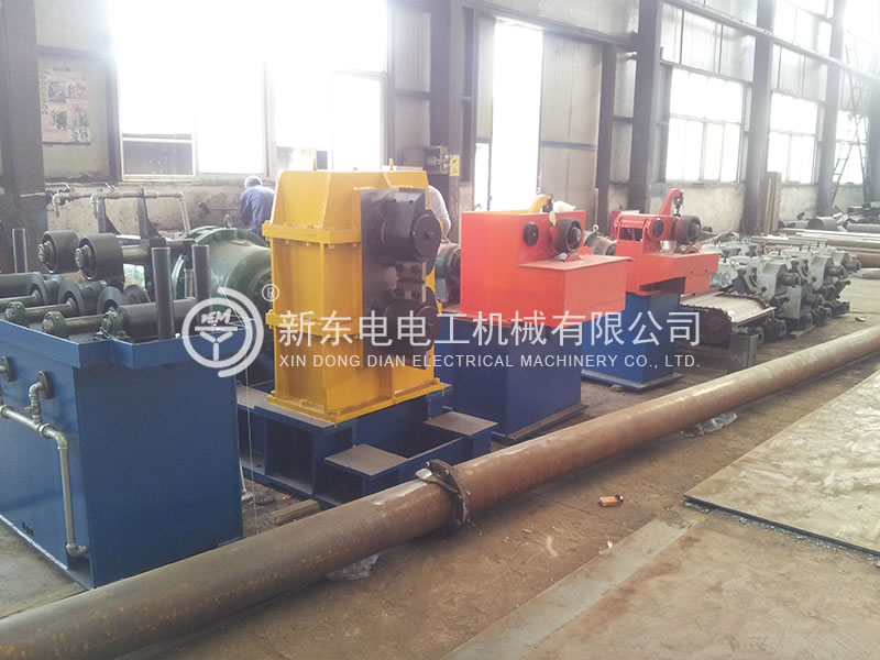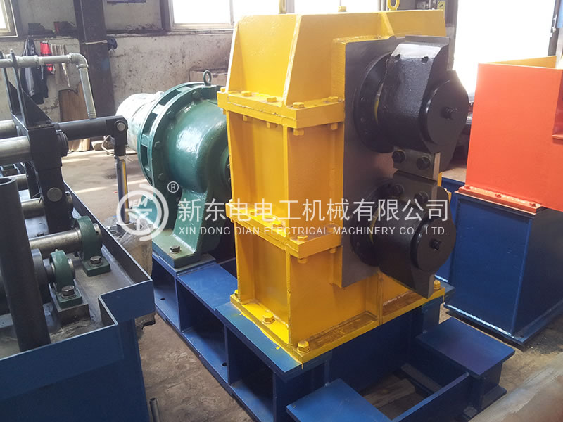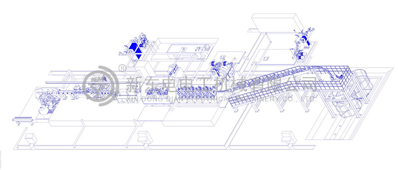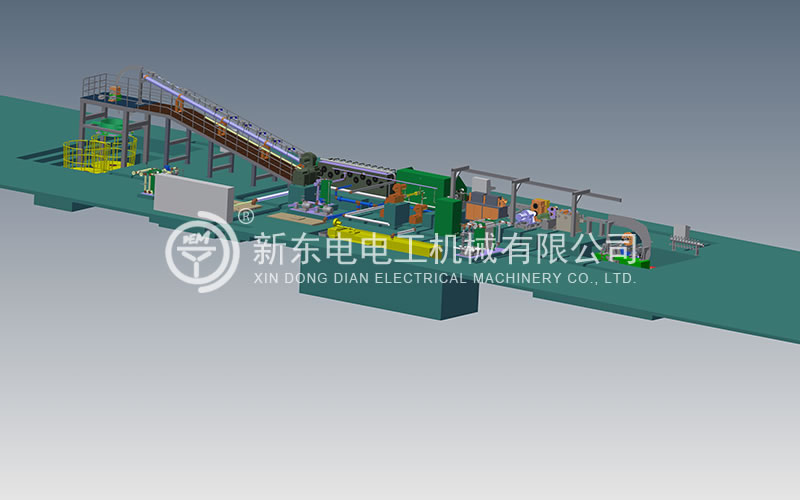 本生產線主要由四輪式連鑄機(專利號:ZL 2009 2 0037329.X; 澆鑄機用零點澆鑄裝置,專利號:ZL 2009 2 0037330.2)、校直機、前牽引機、滾剪機、鑄坯過渡支撐裝置、喂料機、粗軋機、精軋機、鋁桿冷卻淬火裝置、鋁桿甩桿成圈裝置、收線小車及收線筐裝置、連鑄連軋生產線電氣控制系統、連軋機潤滑油系統、連軋機乳液循環系統等組成。