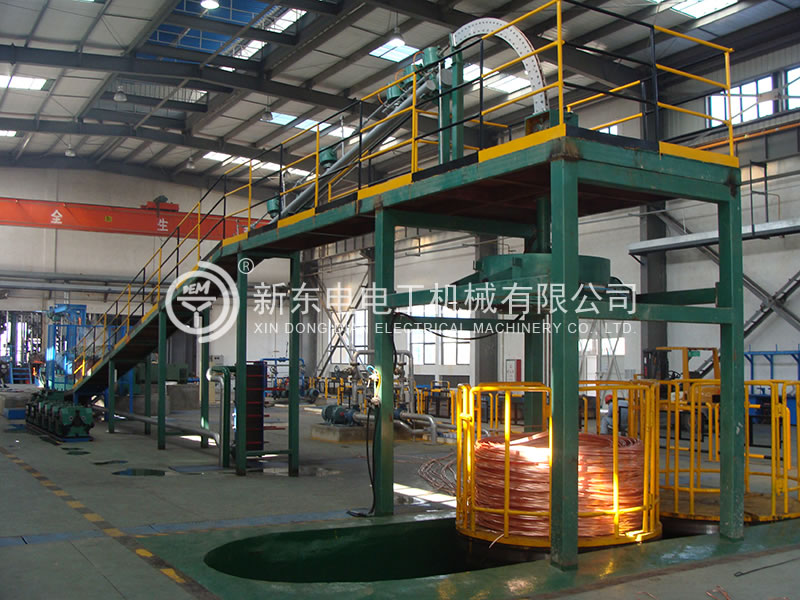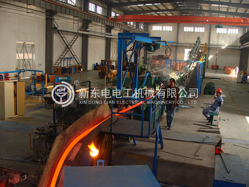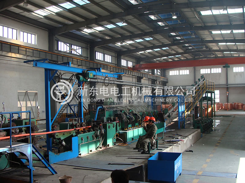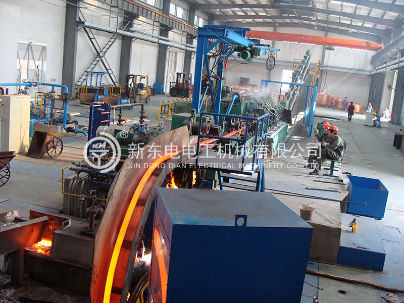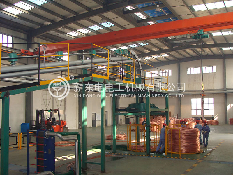 本生產線積徐州新東電電工多年研發銅連鑄連軋技術之經驗,綜合美國南方線材、德國SMS、意大利 PROPERZI 同類設備的優勢特點,為國內獨創,可用100﹪廢舊紫銅作原料,采用先進的火法精煉技術,直接在連鑄連軋生產線上生產符合國標的光亮低氧銅桿。